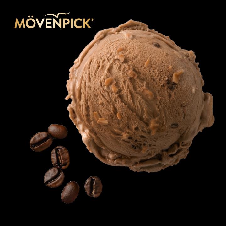 Zum Anrichten mit einem Pinsel einen Schokoladenstrich über den Teller ziehen, eine Kugel MÖVENPICK Espresso Krokant mittig platzieren und den Kaffee-Espuma in ein kleines, schmales Glas füllen. Abschließend den Teller noch mit NESCAFÉ Zucker-Bröseln bestreuen und die Schoko-Knabberstäbchen sowie Schoko-Kaffeebohnen dazulegen.