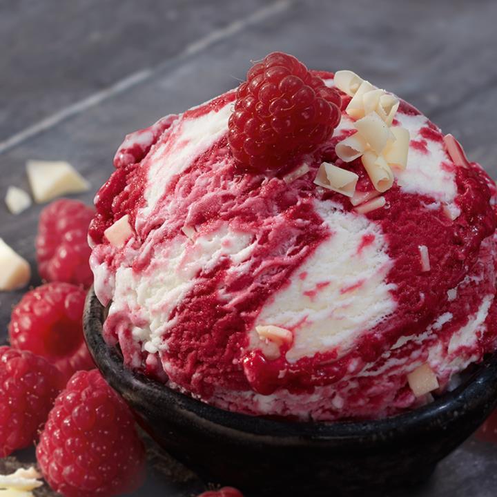 Himbeersorbet und Eis mit Schlagsahne mit weißen Schokoladenstückchen (5,5 %)Conveniencegrad