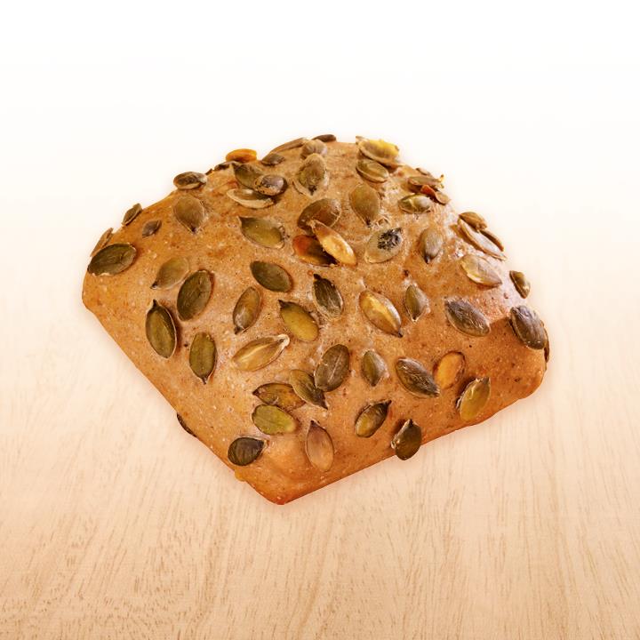 WEIZENMEHL, 13% Kürbiskerne, Wasser, Sauerteig (Wasser, WEIZENMEHL, ROGGENMEHL), Hefe, Speisesalz, GERSTENMALZEXTRAKT, ROGGENVOLLKORNMEHL, Traubenzucker, Verdickungsmittel E412.