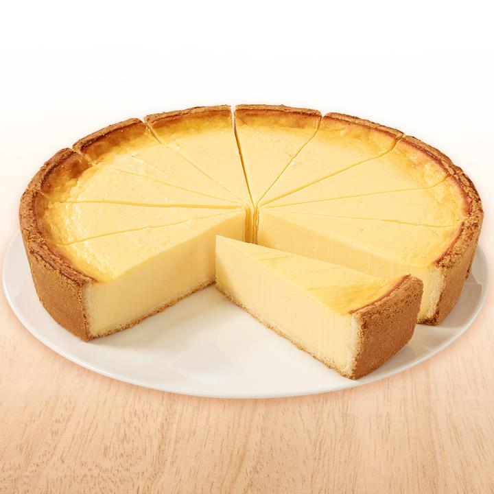 Käsekuchen aus Mürbeteigboden und Käsemasse (80%), tiefgefroren, vorgeschnitten in 14 Portionen.Conveniencegrad